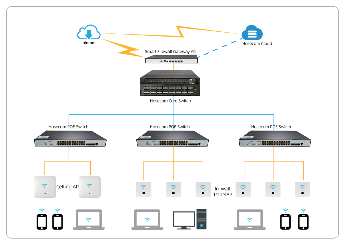 Hosecom pays high attention to the hotel industry and launches a series of solutions combined with the needs of the hotel industry, including intelligent wireless AP, intelligent POE switch, intelligent wifi gateway and other products that meet the needs of the hotel. We are committed to creating a cost-effective, easy-to-use, intelligent management, intelligent marketing, safe, reliable and stable intelligent network.