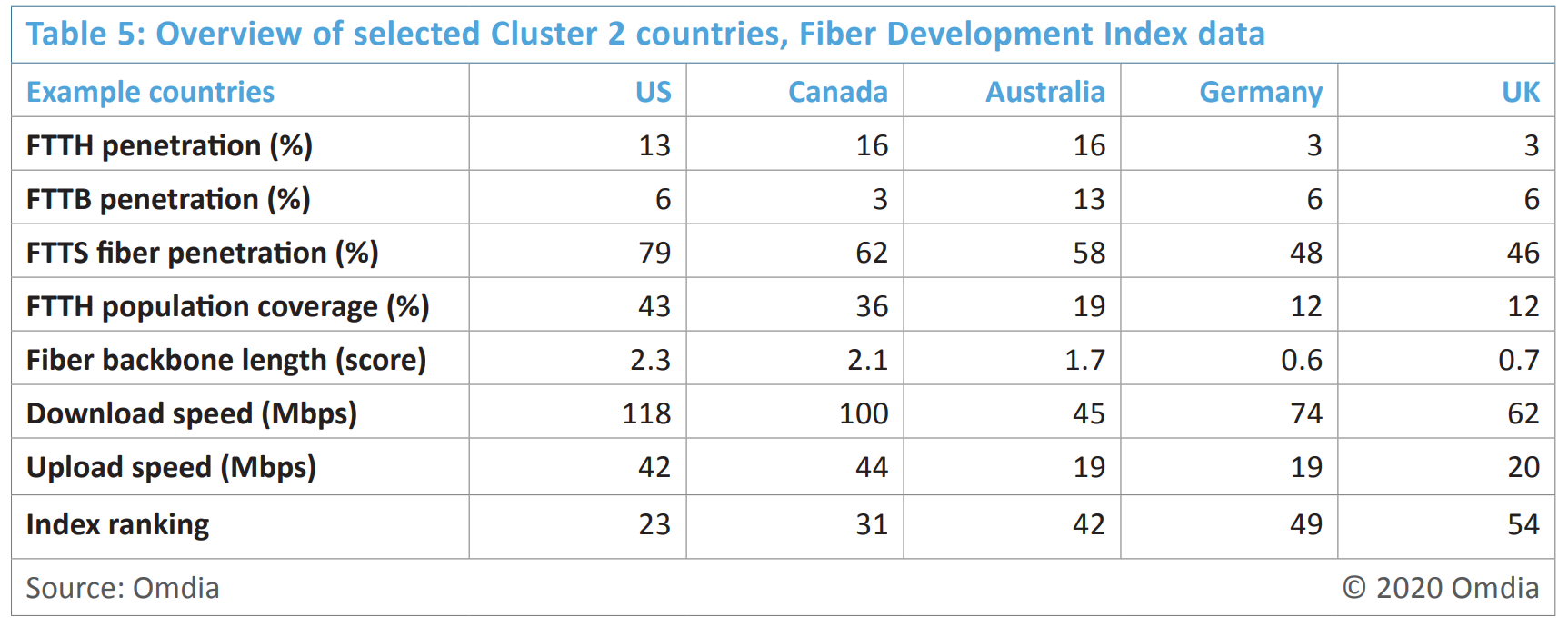 Optical Fiber Network Development Index (FDI) 2020 ranking