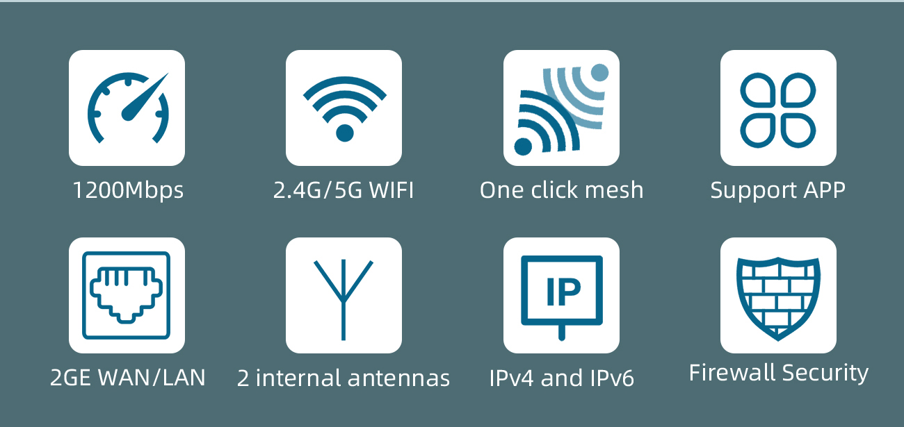 1GE WAN LAN 2 GE Gigabit Ports Wi Fi AP Access Point AC1200 Dual Band Wireless Wifi Mesh Router